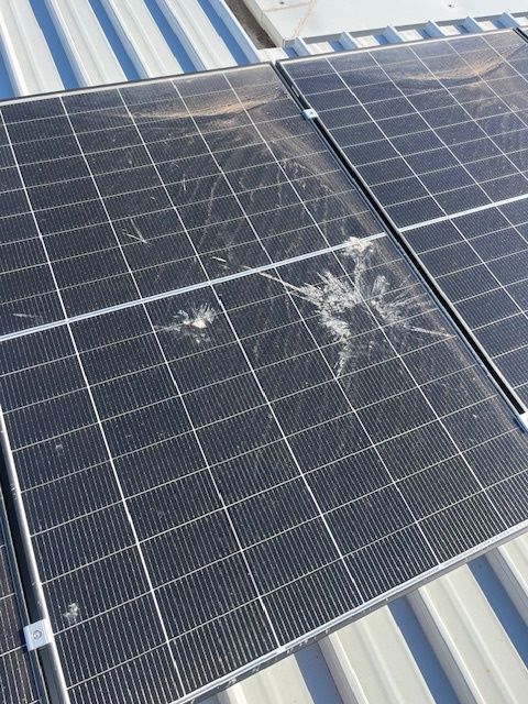 Cracks or chips on solar panels.